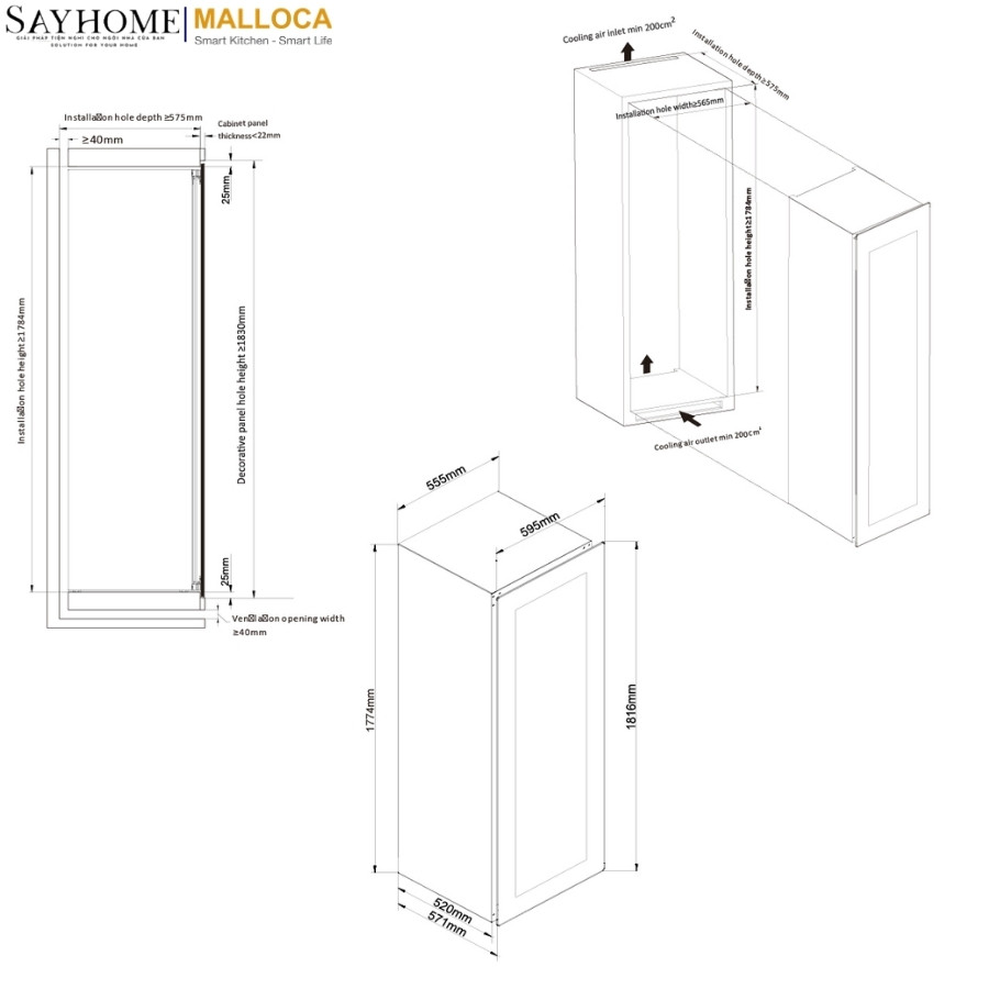 | Kích thước | W595 x D571 x H1816mm |