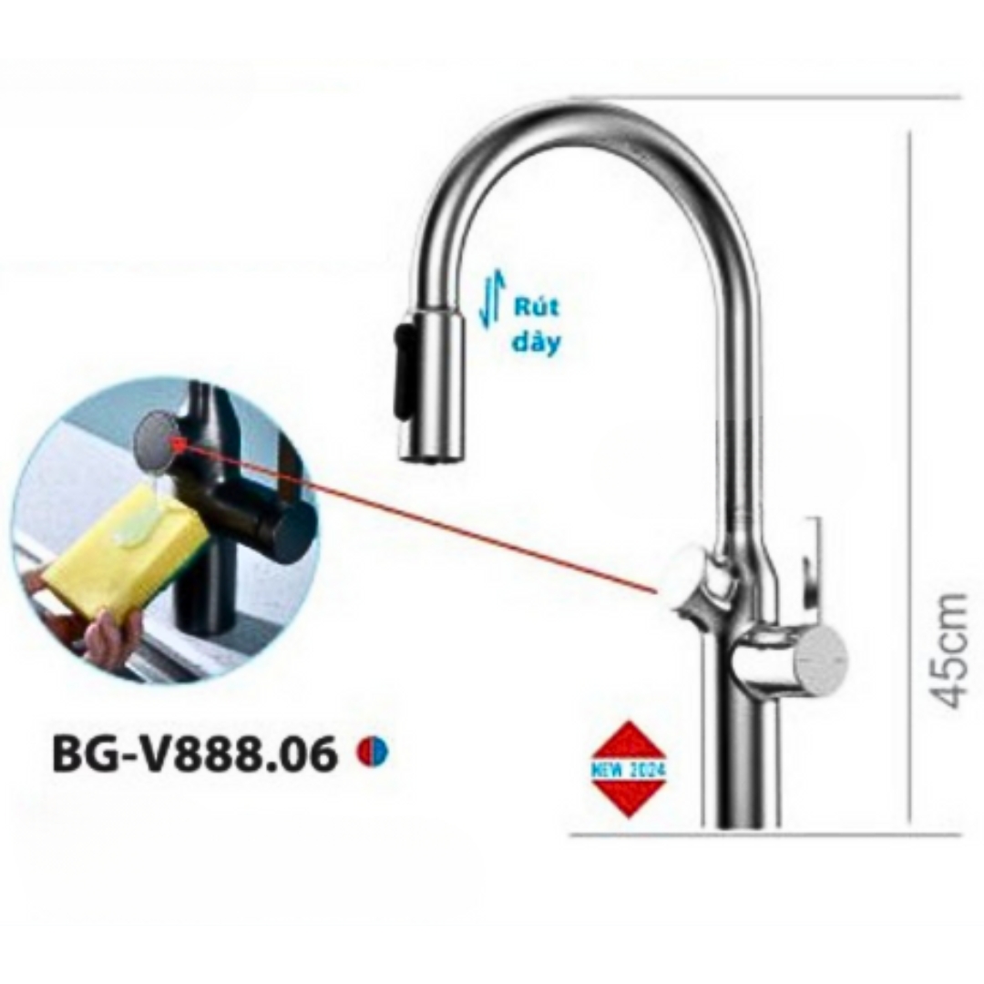 VÒI RỬA CHÉN BÁT CAO CẤP CẢM BIẾN XÀ PHÒNG NÓNG LẠNH DÂY RÚT B-GEM BG-V888.06