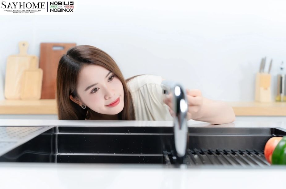 Ngoài ra, các dòng vòi rửa bát nóng lạnh Nobili còn được trang bị bộ giới hạn nhiệt tích hợp – một giải pháp an toàn thông minh giúp kiểm soát nhiệt độ nước đầu ra, ngăn ngừa nguy cơ bỏng do nước quá nóng, đặc biệt hữu ích với gia đình có trẻ nhỏ hoặc người lớn tuổi.
