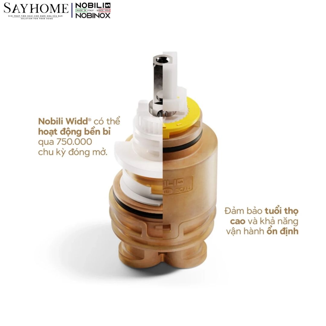 | Bảo hành | 5 (năm) cho thân vòi, 36 (tháng) cho linh phụ kiện, 20 năm cho lõi chia nước Nobili Widd® |